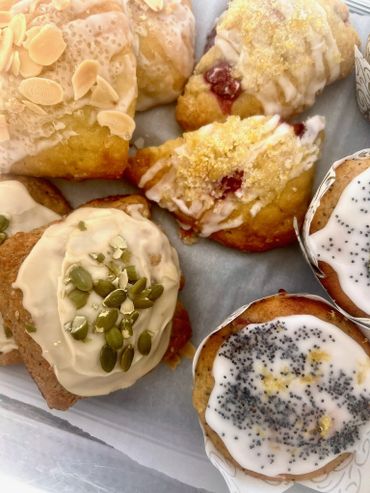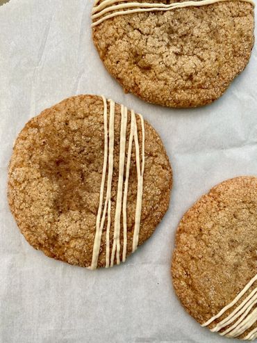 Manitoba apples, warm spices, soft and pillowy with the perfect amount of white chocolate drizzle