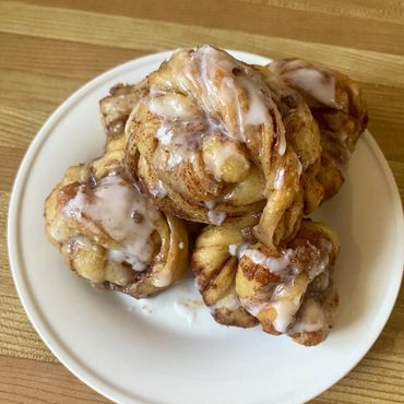 A twist on the classic cinnamon roll, full of that sweet, sugary, cinnamon goodness. Topped with an icing sugar glaze.