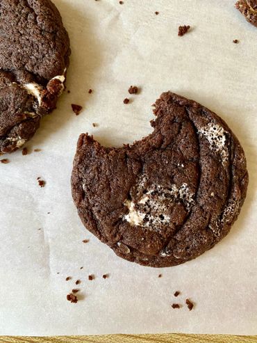 Engrained Flour Co. Rye flour and dark chocolate chunks, topped with gooey, golden toasted marshmallow. This brownie is dense and fudgy, with a unique rye flavour.